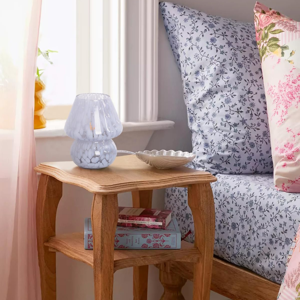 ONEWISH Mushroom Lamp Small Vintage Table Lamp Blue